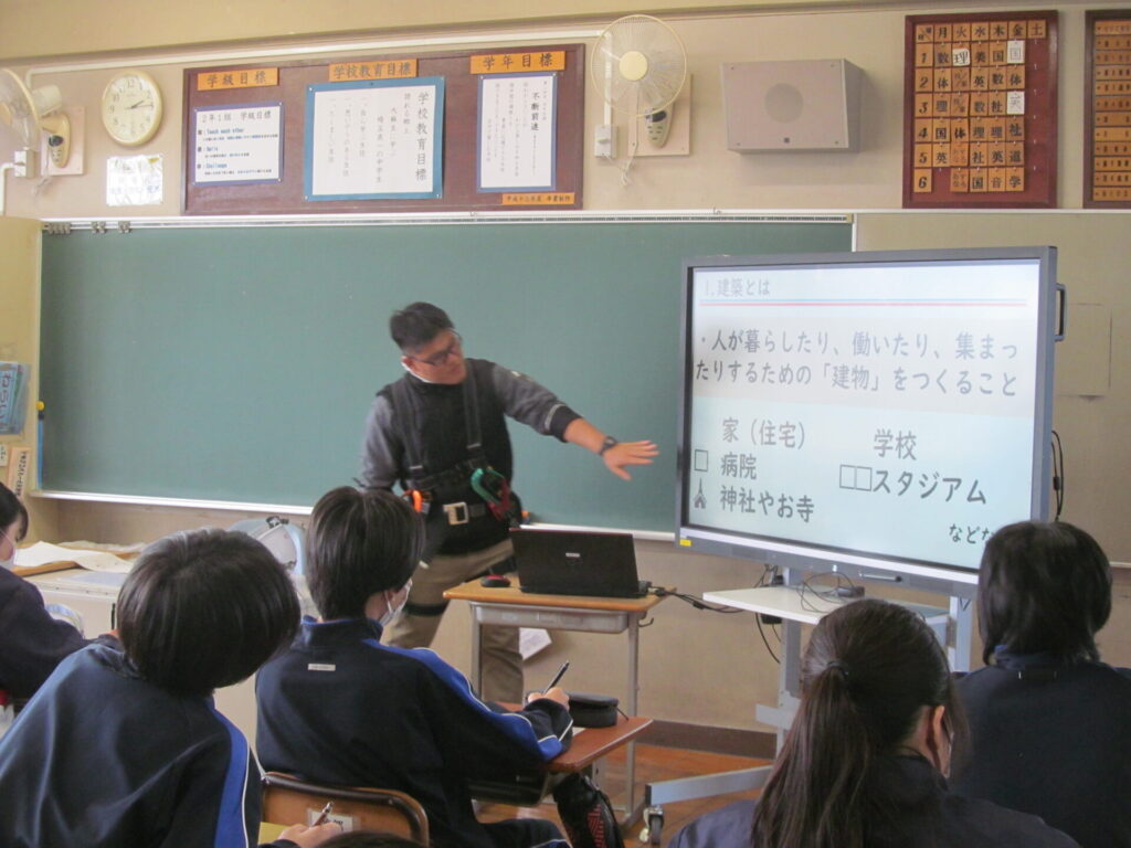 出前授業【県立熊谷工業高校】 2025年12月9日 最終更新日時 : 2025年12月9日 kumagaya_edit 2年生を対象に、県立熊谷工業高校より建築科と電気科の先生方が授業をしに来てくださいました。高校の先生方は、専門的なことを実際の生活と結び付けて楽しく教えてくださるので、生徒たちも興味深く聞いたり作業を進めていました。