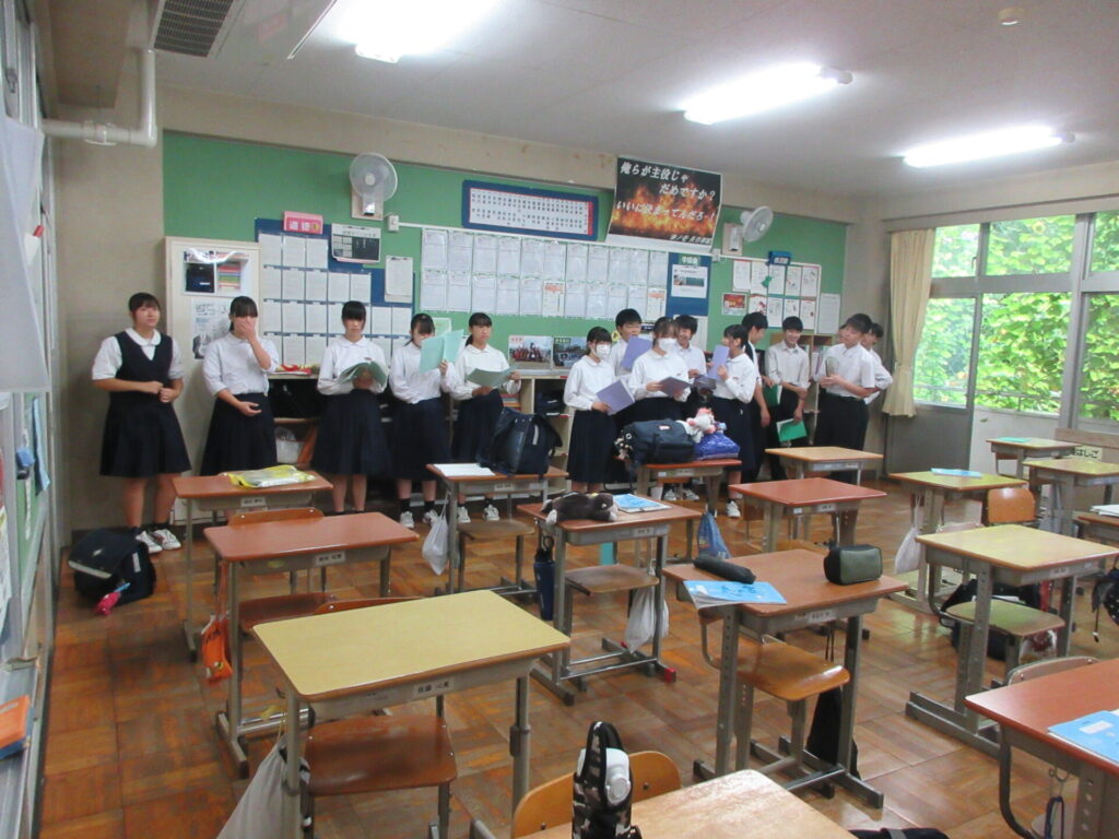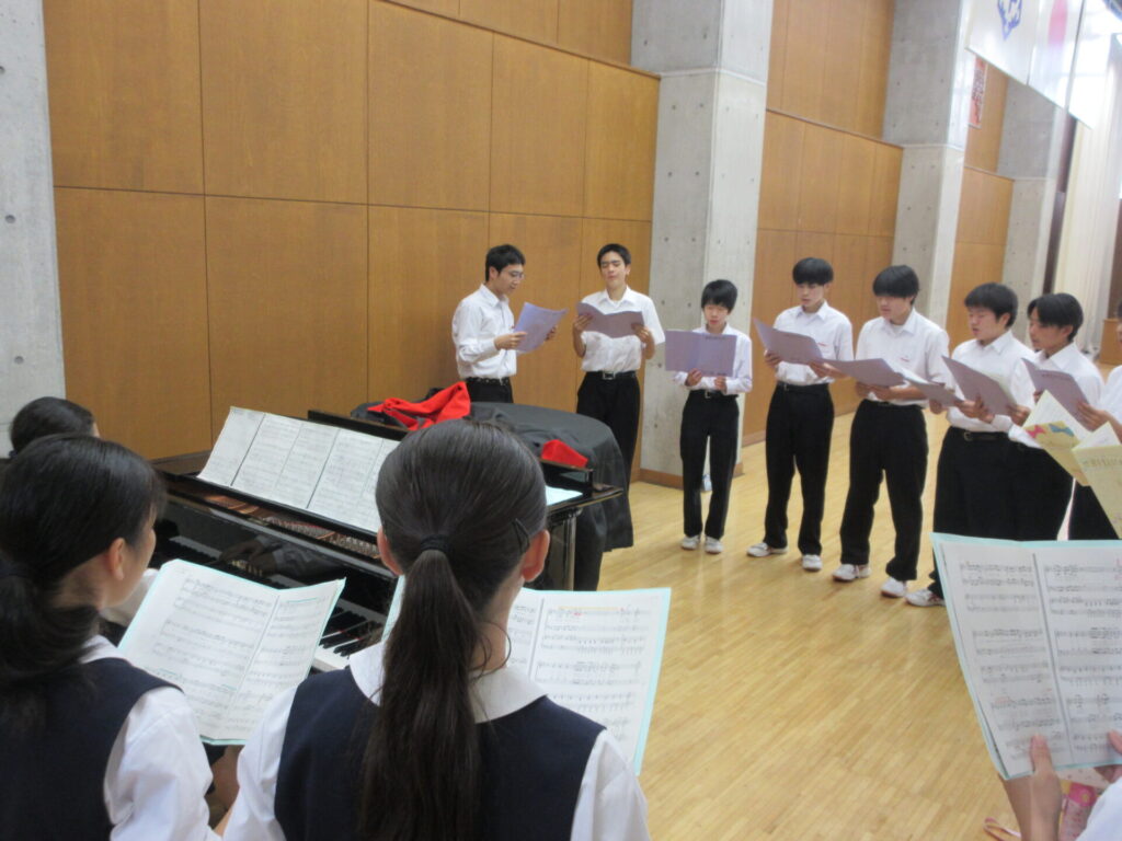 今月24日に開催する『あすなろ祭』に向け、各教室で朝練習を行ってきましたが、いよいよ体育館を使用しての合唱練習が始まりました。