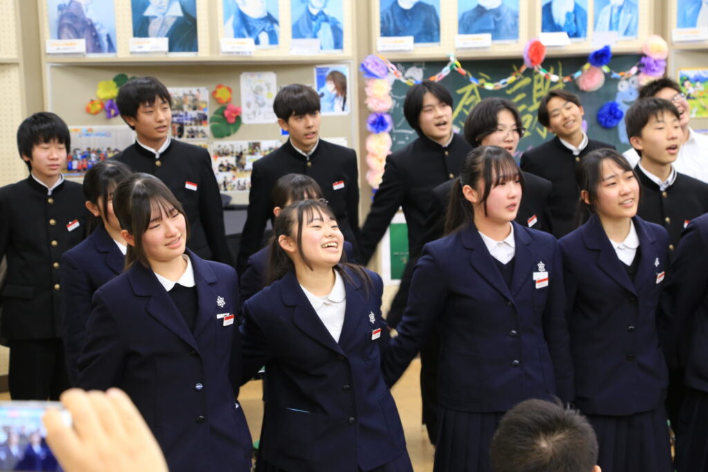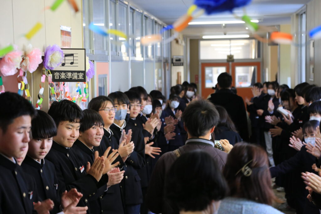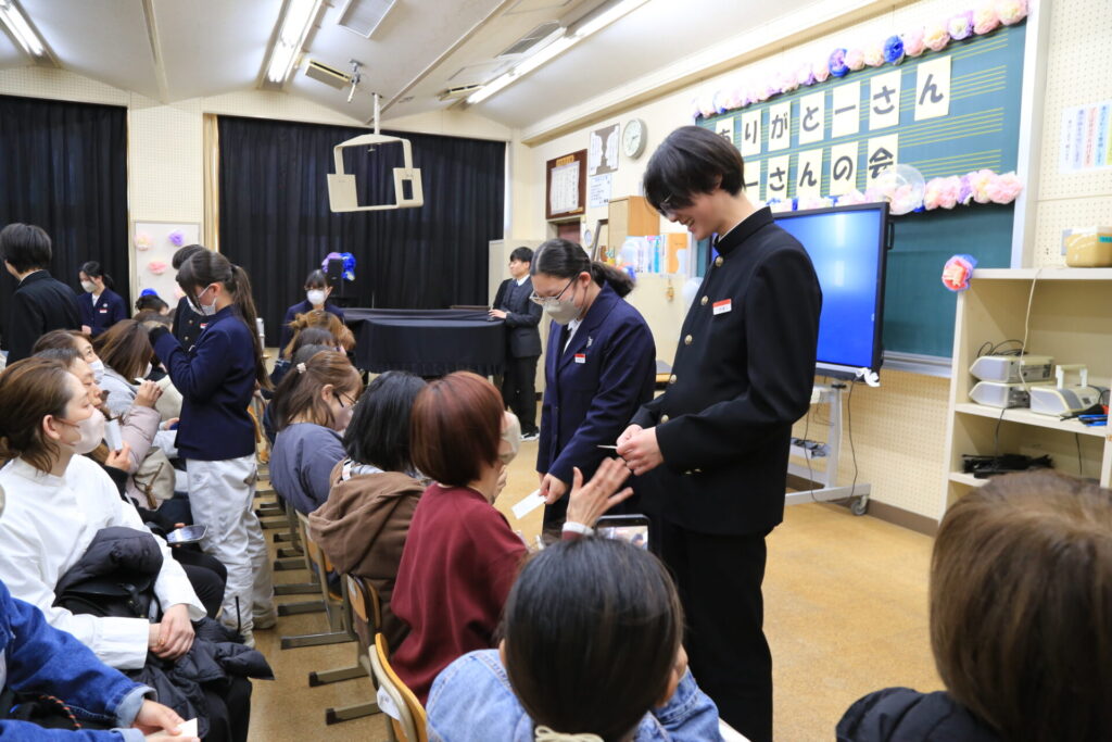 1月に予定していた3年生の授業参観・学級懇談会を延期としたことにより、本日の3年生を送る会終了後に3年生学級懇談会として「ありがとーさん、かーさんの会」を開催しました。生徒が企画・運営し、学校生活のビデオ上映や保護者に向けた合唱、感謝の手紙のプレゼントなどを行いました。涙あり笑いありの、とても感動的な会となりました。ご参会いただいた保護者の皆様、ありがとうございました。