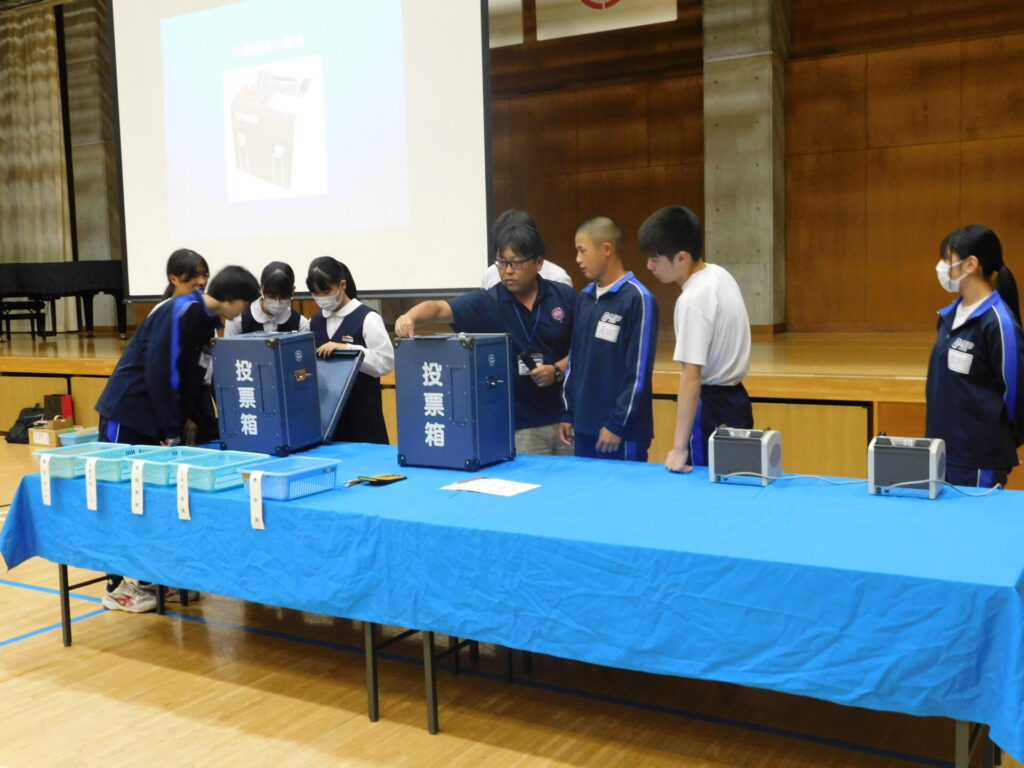 選挙管理委員会事務局の方にお越しいただき、3年生が選挙に関する出前授業を実施しました。