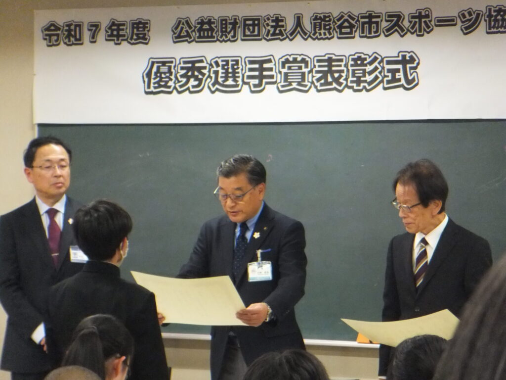 熊谷市スポーツ協会優秀選手賞表彰式 2026年2月10日 最終更新日時 : 2026年2月26日 kumagaya_edit 昨日、熊谷市緑化センターを会場に、公益財団法人熊谷市スポーツ協会優秀選手賞表彰式が行われました。本校からも3種目4名の生徒が、小林市長さんから表彰していただきました。次のステージを目指し、さらに頑張りましょう!