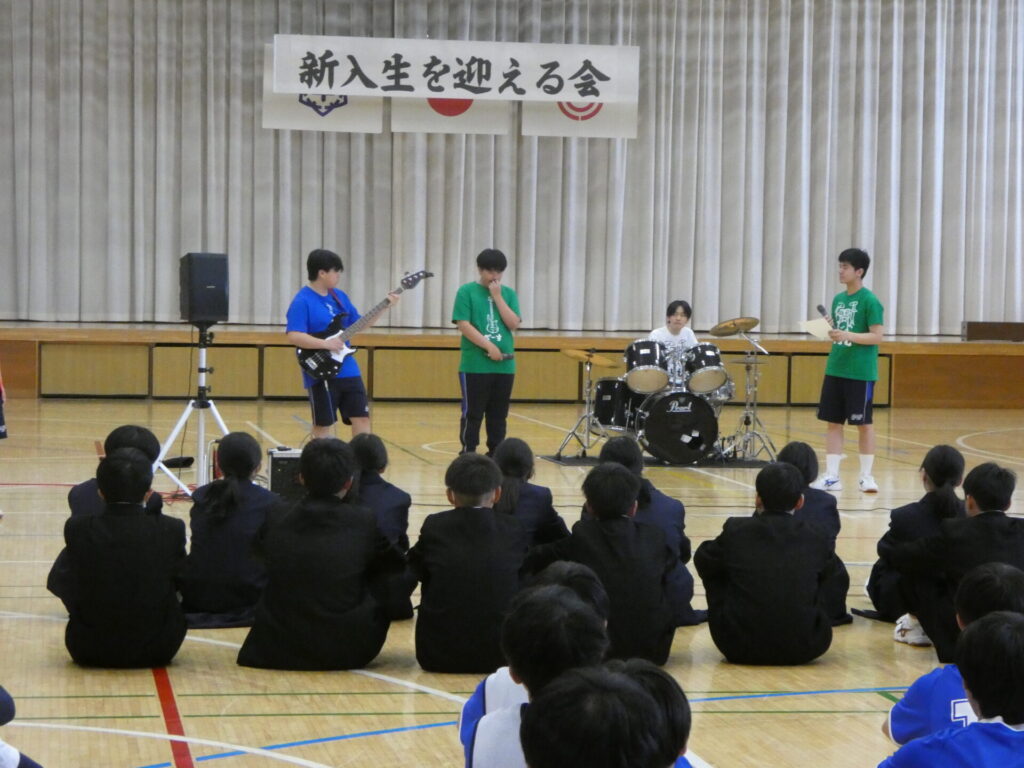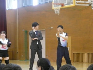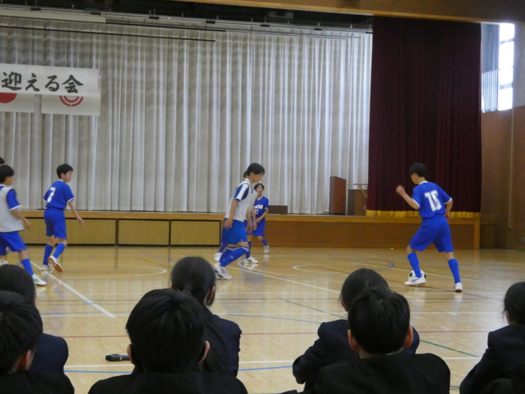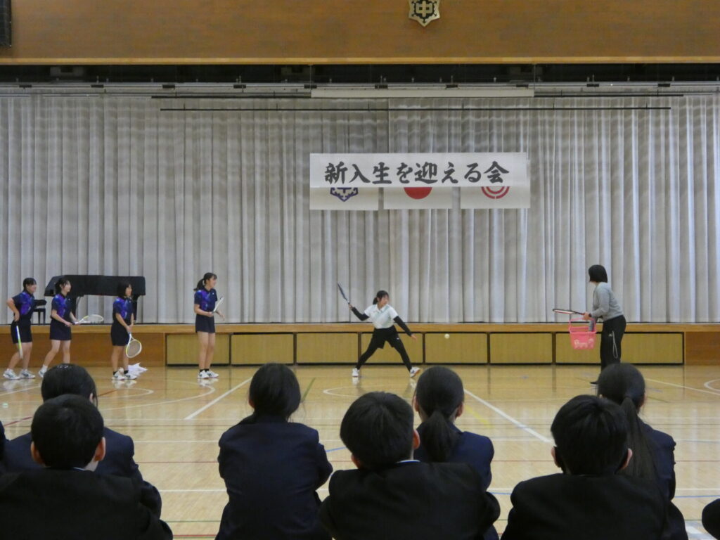 部活動説明会で2・3年生が1年生に向けて練習風景や部活動の風景を見せました。1年生は、先輩方の活動の様子を見て、緊張した面持ちでしたが時より笑顔で先輩方をみていました。基本3年間続ける部活動になるので、仮入部期間で決めていきましょう。仮入部は14・16・17・20日となります。