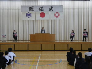 この春に本校を転出された4名の先生方をお迎えし、離任式を実施しました。
